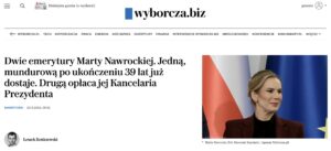 Dwie emerytury Marty Nawrockiej. Jedną, mundurową po ukończeniu 39 lat już dostaje. Drugą opłaca jej Kancelaria Prezydenta
