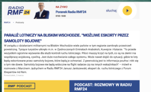 W związku z działaniami militarnymi na Bliskim Wschodzie wiele państw w tym regionie zamknęło przestrzeń powietrzną. Tysiące turystów utknęło m.in. w Zjednoczonych Emiratach Arabskich, Kuwejcie i Katarze. "To przede wszystkim ogromne wyzwanie dla służb kontroli ruchu lotniczego. Piloci muszą liczyć na tych, co są na ziemi i na współpracę wojskową, cywilną. Jest duże rozchwianie całego systemu. Może nawet dojść do sytuacji, gdzie te loty będą eskortowane przez samoloty bojowe, które będą je ochraniać. Z pewnością jest to informacja poufna i nikt się o tym nie dowie. Samoloty bojowe nie będą widoczne na flight radarze czy na innych wskaźnikach" – mówił w rozmowie z Marcinem Jędrychem w Radiu RMF24 Janusz Janiszewski, ekspert ds. ruchu lotniczego z Forum Ekspertów Ad Rem.