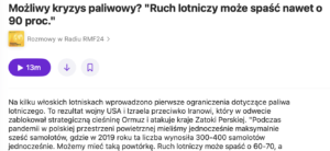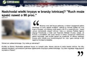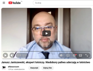 Możemy mieć taki kryzys paliwowy, w którym dostępność paliwa lotniczego na rynku będzie mniejsza i dotknie to również Polskę czy inne kraje w Europie; ruch lotniczy może spaść o 60-70, a nawet 90 proc. – ocenił Janusz Janiszewski, ekspert lotniczy i były p.o. prezesa Polskiej Agencji Żeglugi Powietrznej.