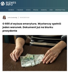 600 zł więcej do emerytury po spełnieniu tego warunku. Dokument trafił już do prezydenta