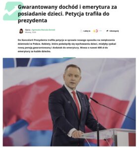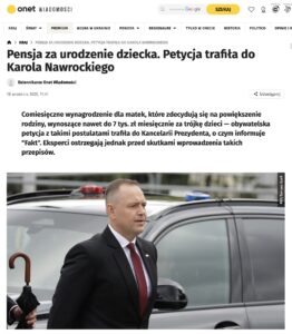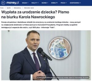 600 zł do emerytury za urodzenie każdego dziecka. Pismo trafiło do Nawrockiego