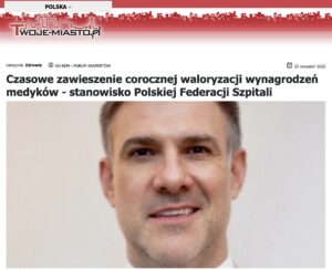 Michał Dybowski, dyrektor Departamentu Bezpieczeństwa i Zrównoważonego Rozwoju Polskiej Federacji Szpitali, Forum Ekspertów Ad Rem. Komentarz ekspercki. Stanowisko Polskiej Federacji Szpitali (PFSz) dotyczące czasowego zawieszenia corocznej waloryzacji wynagrodzeń medyków wynika z troski o stabilność całego systemu ochrony zdrowia. Celem PFSz nie jest ograniczanie wynagrodzeń pracowników, lecz ochrona pacjentów i zapewnienie ciągłości świadczeń. Mechanizm automatycznej waloryzacji, oparty na średnim wynagrodzeniu w gospodarce, spowodował w ostatnich latach, że koszty płac rosły szybciej niż finansowanie ze strony NFZ. W konsekwencji szpitale coraz częściej stawały przed dramatycznym wyborem – albo regulować wynagrodzenia, albo ograniczać leczenie pacjentów. Proponowane przez PFSz czasowe zawieszenie obowiązywania ustawy podwyżkowej ma charakter stabilizacyjny. Pozwoli zachować obecny poziom wynagrodzeń, a jednocześnie zatrzyma spiralę kosztową, która zagraża płynności finansowej wielu placówek. Co najważniejsze, da przestrzeń do wypracowania nowego, przewidywalnego modelu wynagradzania pracowników ochrony zdrowia, dostosowanego zarówno do możliwości systemu, jak i do oczekiwań personelu medycznego. PFSz jest przekonana, że odpowiedzialne podejście do regulacji płac wymaga oddzielenia środków przeznaczonych na wynagrodzenia od środków na leczenie pacjentów. Tylko w ten sposób można zagwarantować, że pieniądze publiczne będą w równym stopniu służyć pracownikom i pacjentom, a szpitale będą mogły bezpiecznie planować swoją działalność. Polska Federacja Szpitali podkreśla, że proponowane przez PFSz rozwiązanie to nie krok wstecz, lecz inwestycja w przyszłość systemu. Utrzymanie dostępności świadczeń, zapewnienie stabilności finansowej placówek oraz stworzenie trwałego, sprawiedliwego i przejrzystego modelu wynagradzania to cele, które muszą stać się priorytetem w dialogu rządu, pracodawców i związków zawodowych.