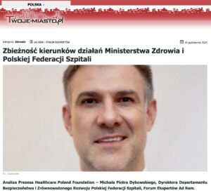 Kierunek zaprezentowany w wywiadzie minister zdrowia Jolanty Sobierańskiej-Grendy dla „Rzeczpospolitej” to ważny moment dla polskiego systemu ochrony zdrowia – potwierdzenie, że głos środowiska szpitalnego, od lat artykułowany przez Polską Federację Szpitali, został realnie usłyszany. Od wielu miesięcy widzimy konsekwentne zbliżanie się strategii Ministerstwa Zdrowia i Polskiej Federacji Szpitali w kluczowych obszarach: finansowania, kadr, konsolidacji i odporności systemu. To sygnał dojrzewania polityki zdrowotnej państwa, opartej na faktach, nie emocjach. Jako Prezes Healthcare Poland Foundation i Dyrektor w Polskiej Federacji Szpitali widzę w tych zapowiedziach spójność z kierunkiem, który wspólnie z prof. Jarosławem J. Fedorowskim rozwijamy od wielu lat. To kierunek transformacji opartej na wiedzy, współpracy i systemowym planowaniu. Dziś nie potrzebujemy kolejnych rewolucji – potrzebujemy konsekwencji, koordynacji i odwagi, by wdrażać zmiany oparte na analizie i doświadczeniu praktyków. Healthcare Poland Foundation i PFSz będą w dalszym ciągu wspierać Ministerstwo Zdrowia w tworzeniu nowoczesnego, zrównoważonego systemu, w którym stabilność finansowa idzie w parze z odpornością organizacyjną, a troska o pacjenta z racjonalnym zarządzaniem – powiedział Michał Dybowski, Prezes Healthcare Poland Foundation, dyrektor Departamentu Bezpieczeństwa i Zrównoważonego Rozwoju Polskiej Federacji Szpitali, Forum Ekspertów Ad Rem.